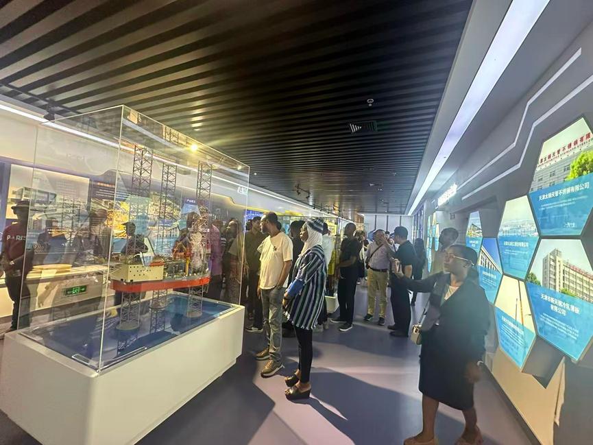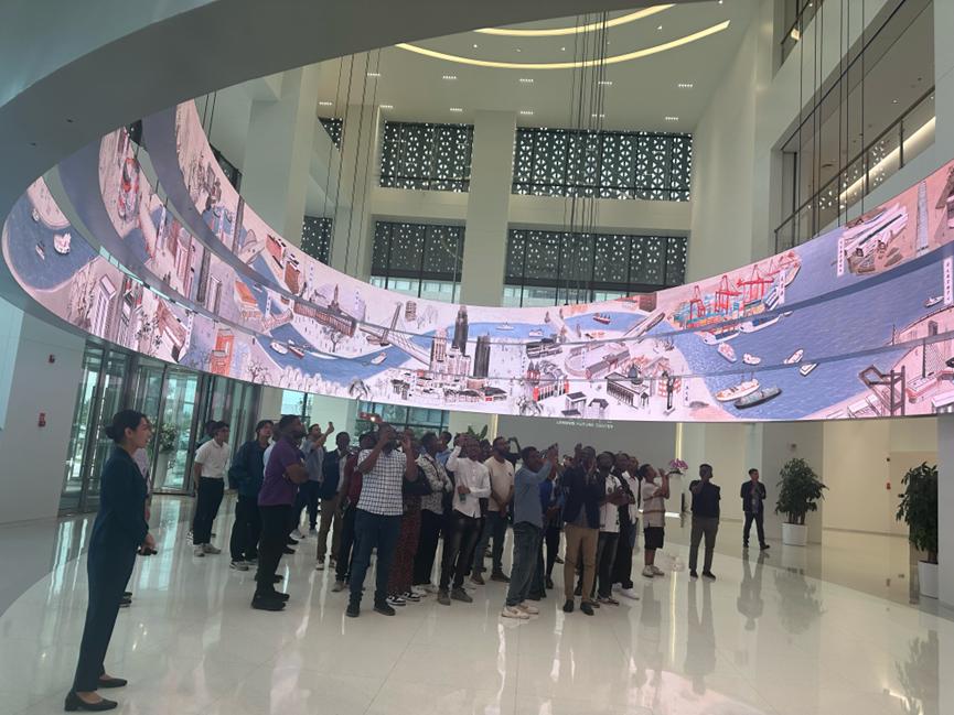 The first stop was at the Tianjin Airport Economic Zone Exhibition Centre, where international students had a systematic approach of the Tianjin Port Free Trade Zone's thirty-four-year development journey: historical evolution, spatial planning, internationalization, industrial advancement, and daily life improvements.